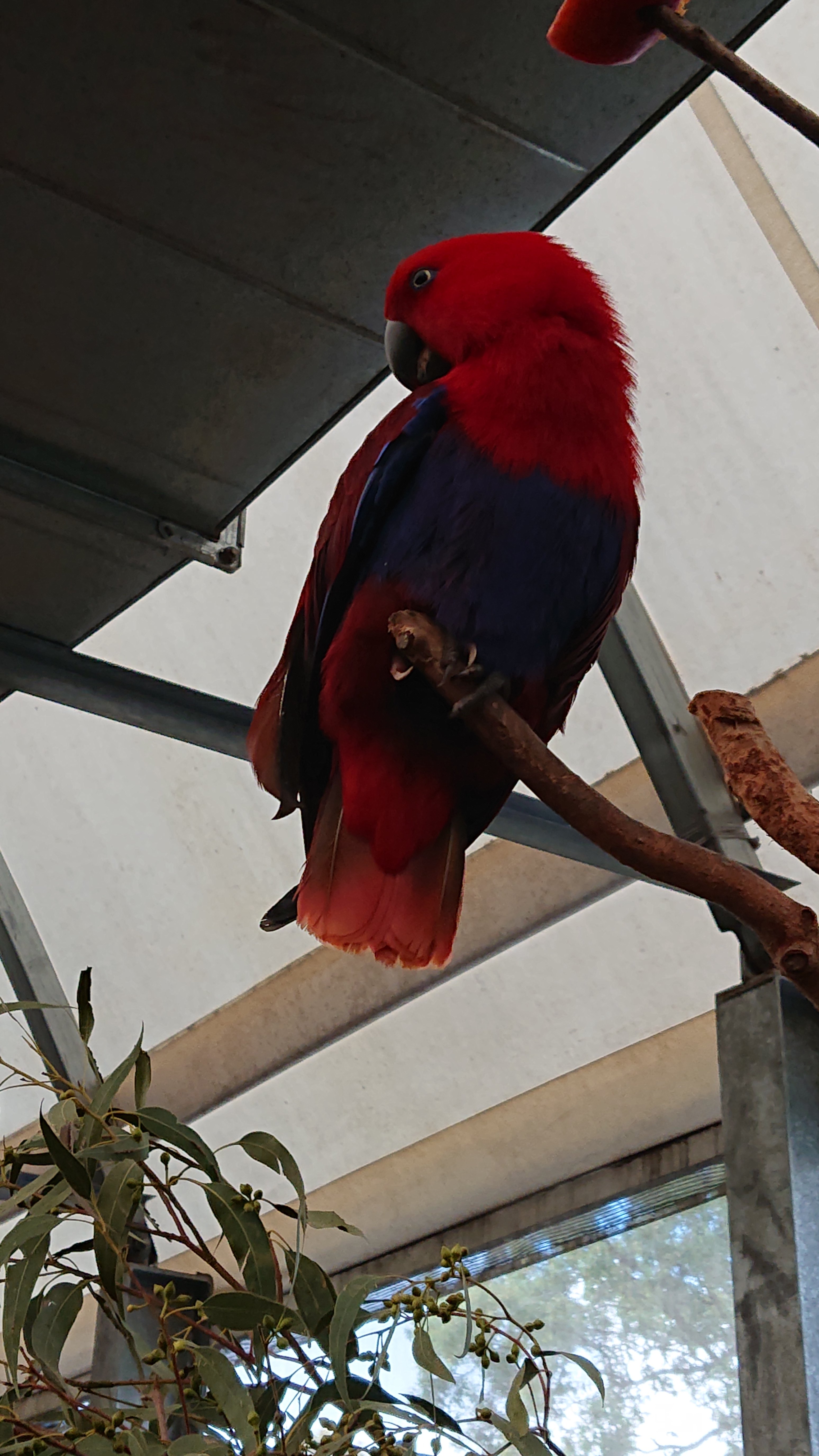 Eclectus parrots (Eclectus roratus). Red one is female and green one is male. There are so many birds whose male and female has different colors, but that both of them are beautiful is very rare case.