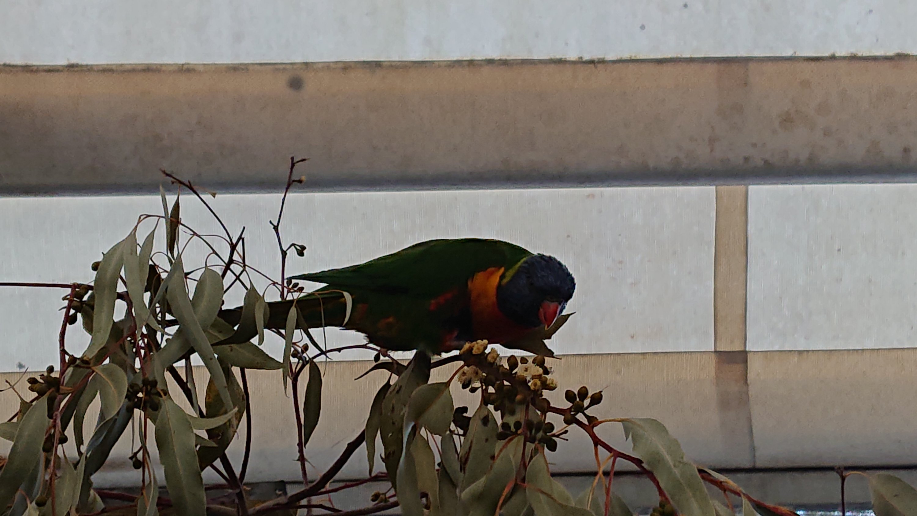Rainbow lorikeet (Trichoglossus moluccanus) is one of the most colorful birds. There are many rainbow lorikeets around the student village.