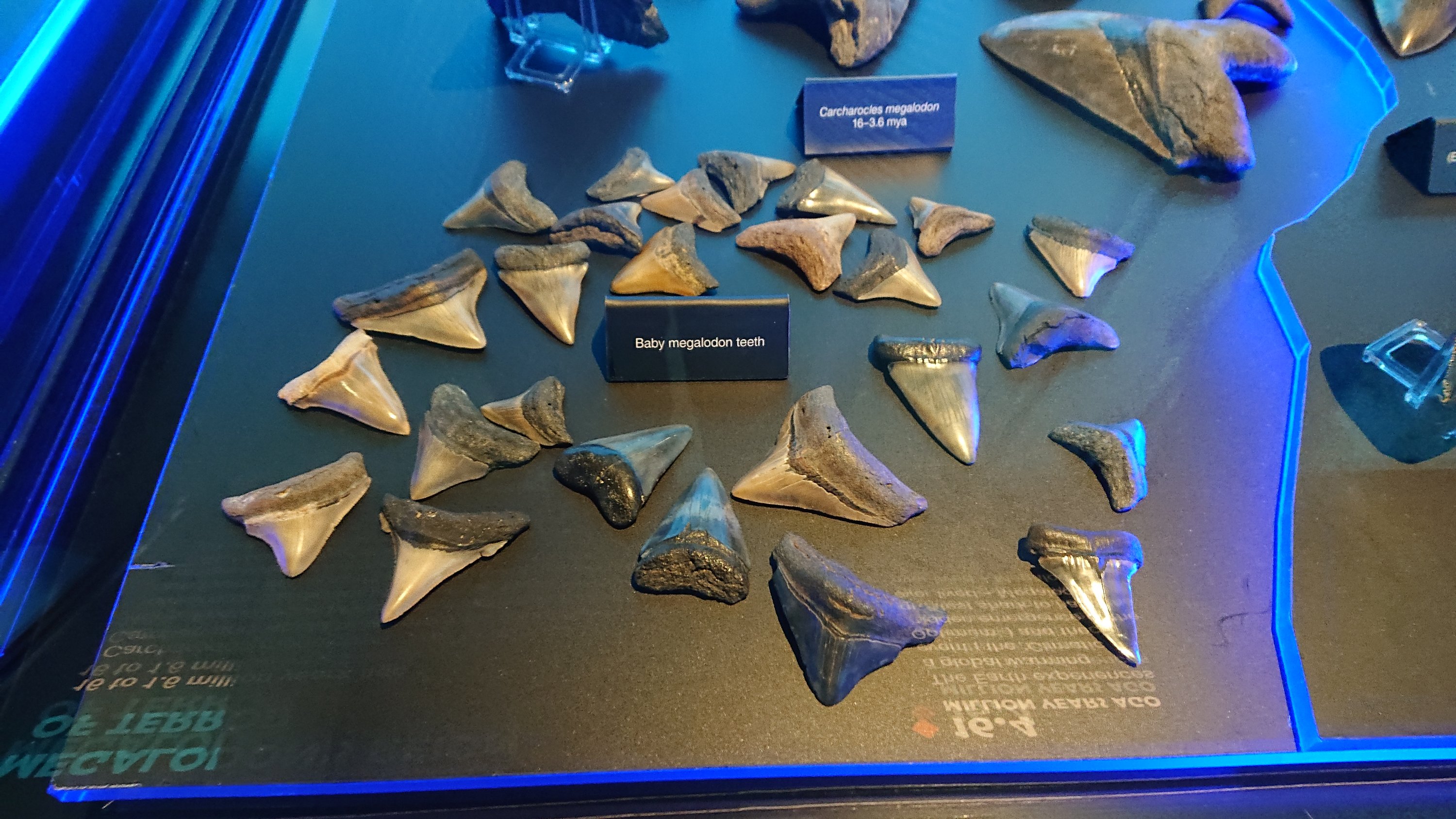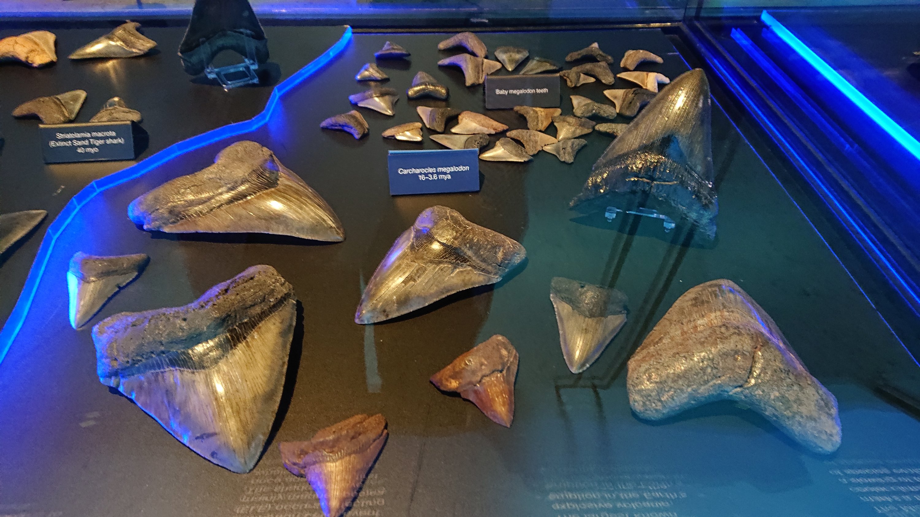 Teeth of juvenile megarodon. They are big although they are juvenile’s.