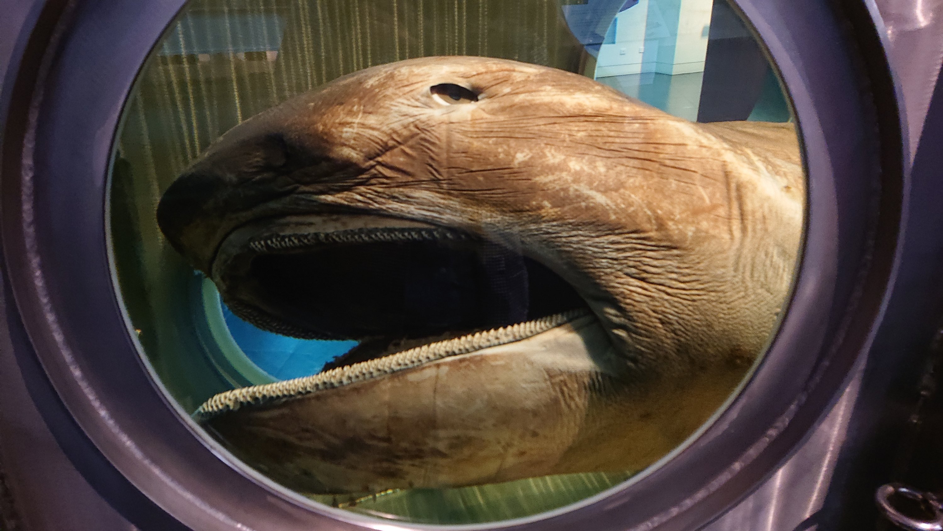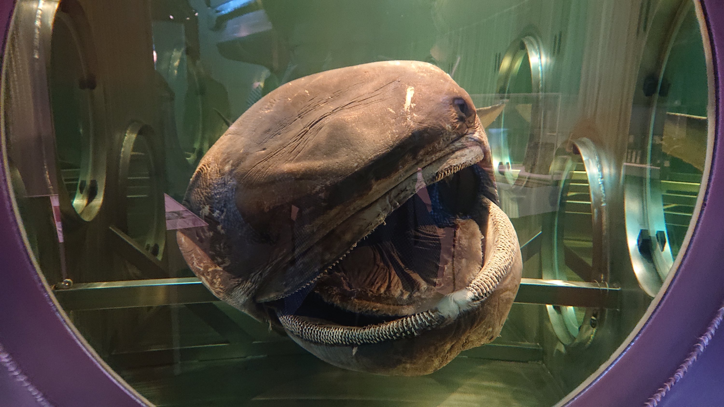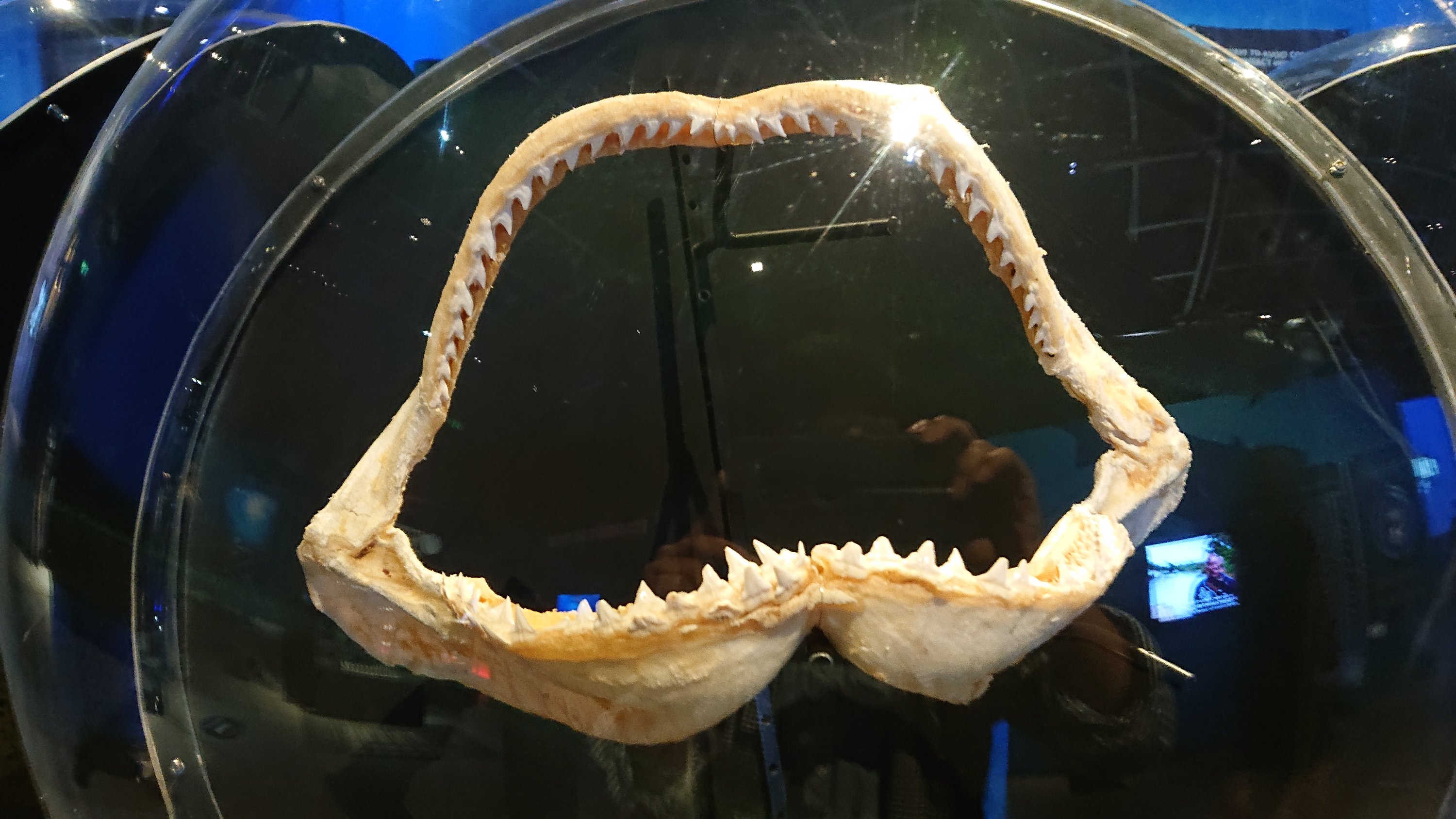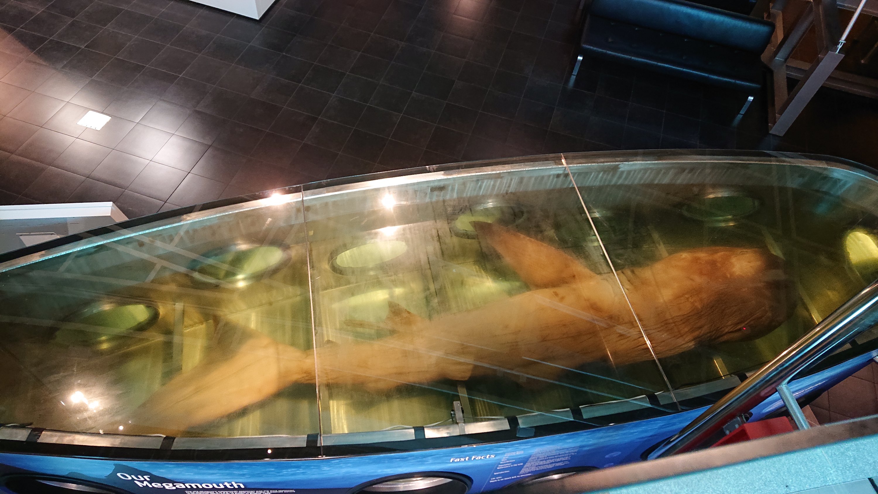 Megamouth shark (Megachasma pelagios) is in permanent exhibition. He has big mouth as his name, but his body is also huge.