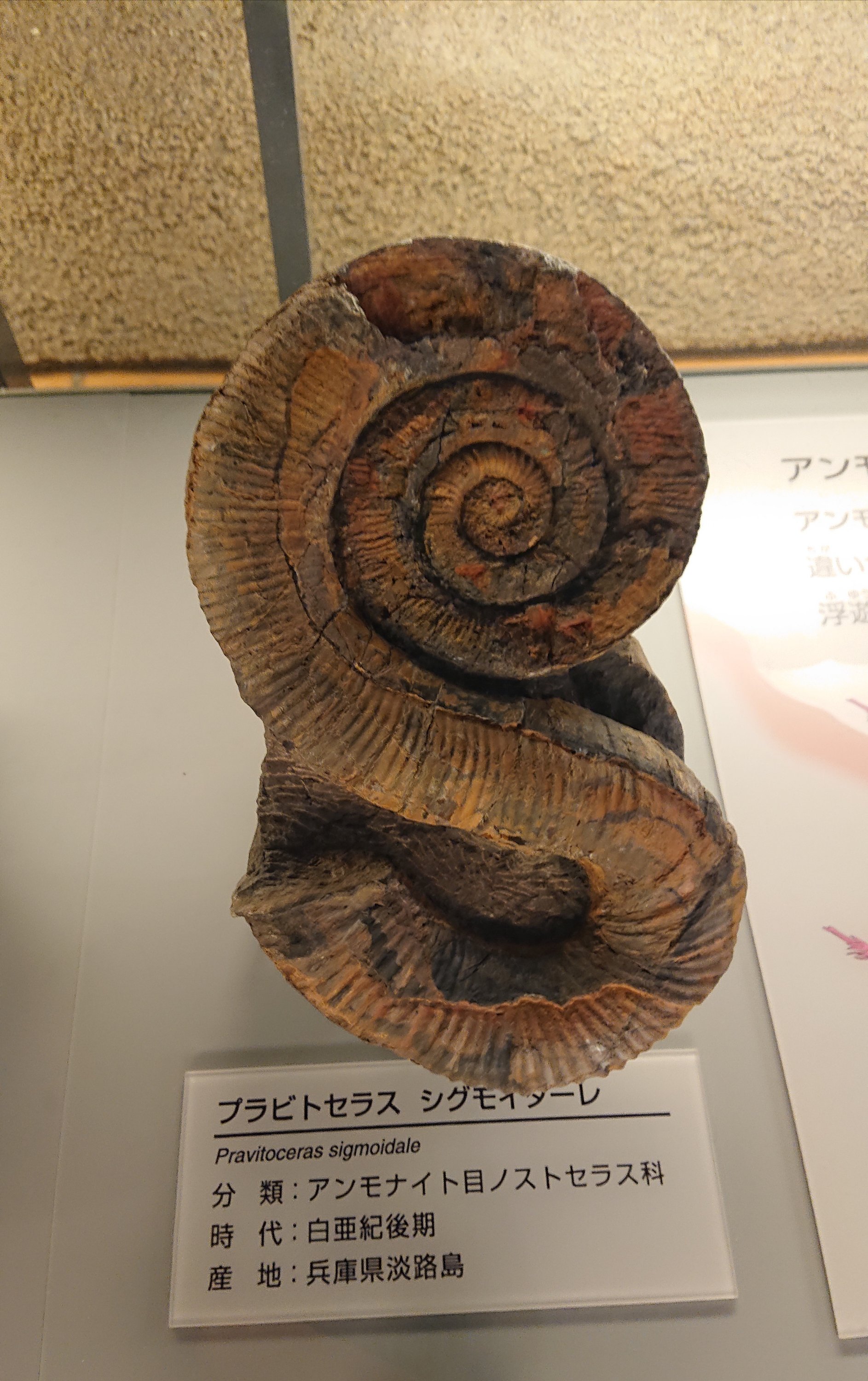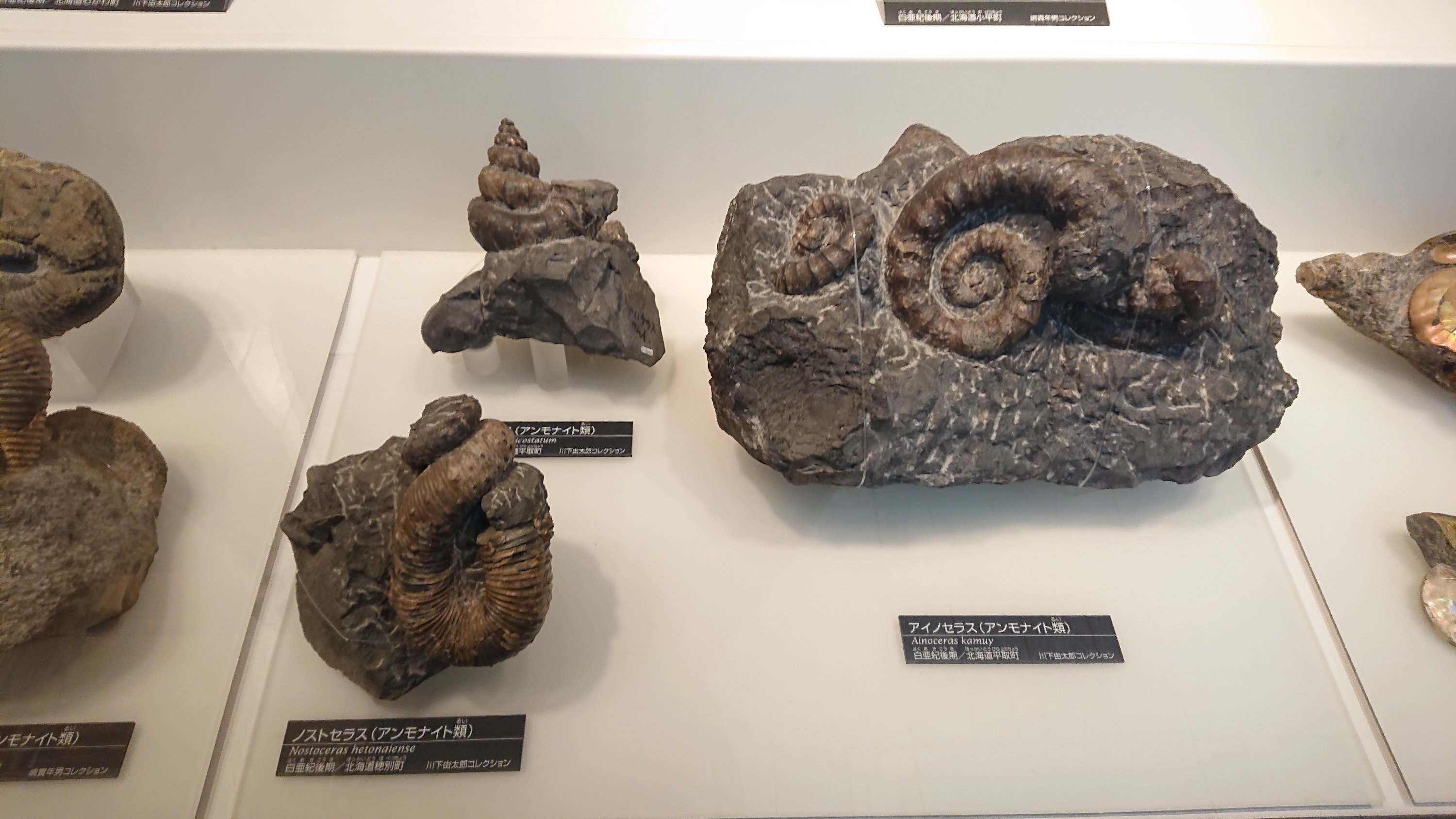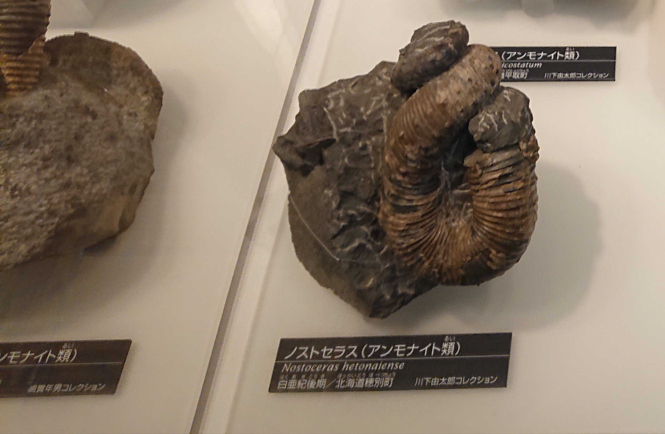 “Unusually coiled ammonites” lived in Late Cretaceous, about 100 to 66 million years. ago. They are mainly found in Yezo Group, the strata in Hokkaido, and Izumi Group, the strata between Osaka and Ehime.